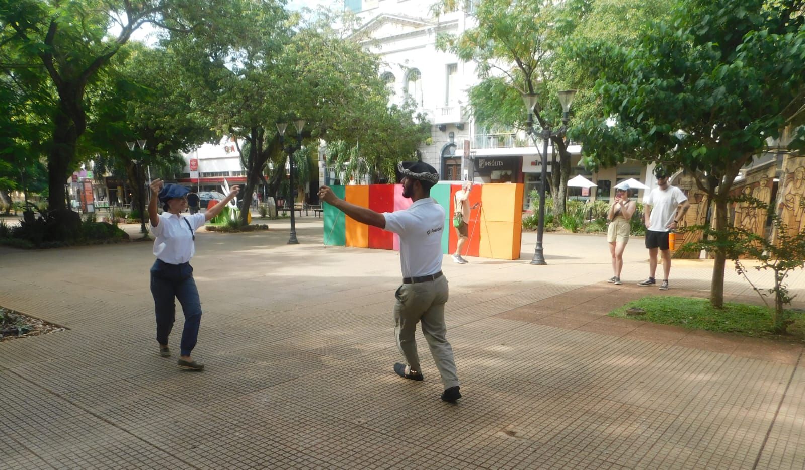 El paseo finalizó en Bolívar y Colón, donde los entusiasmados participantes del tour oyeron un poco de la historia de Andresito, el primer gobernador aborigen de las Misiones, frente al monumento suyo en forma de mural esculpido que se levanta en el lugar. Antes de la despedida, una pareja de bailarines, también de la oficina de Turismo, danzó al son de una pieza folklórica.
