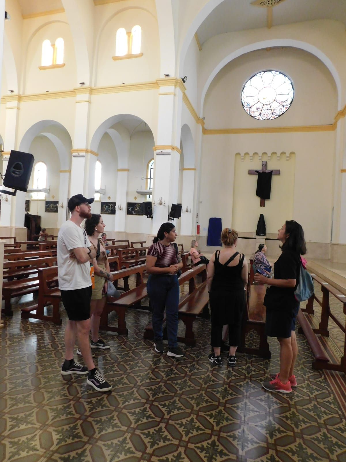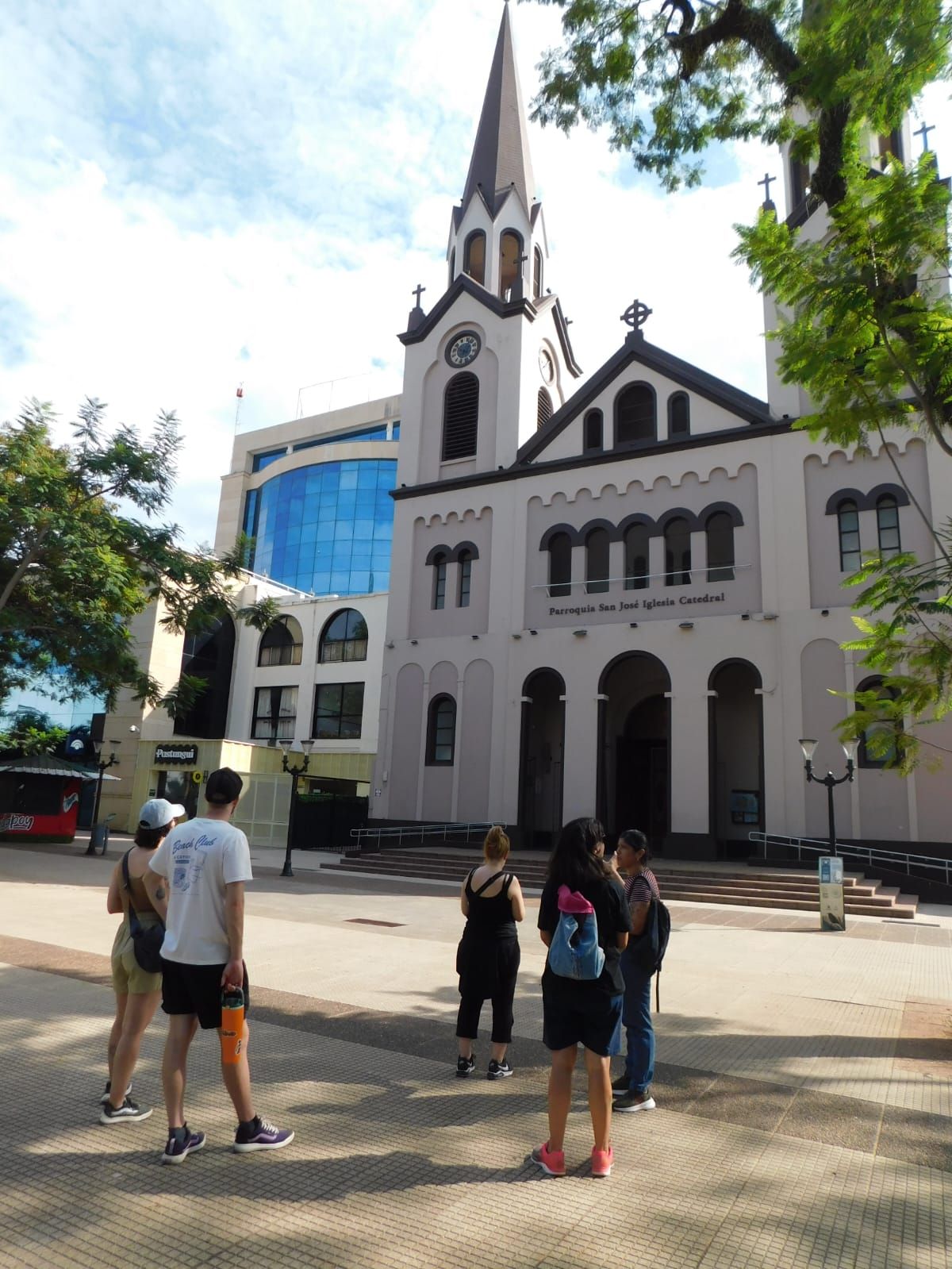 Tras una breve reseña de los detalles arquitectónicos de la catedral San José, que lleva su nombre por el patrono de Posadas, el grupo ingresó a la iglesia donde se enteró que los restos del primer obispo de la ciudad, monseñor Jorge Kemerer descansan ahí. Adentro también conoció detalles de los jesuitas que estuvieron asentados más de cien años en esta región evangelizando a los pueblos originarios hasta que fueron expulsados por la corona española.