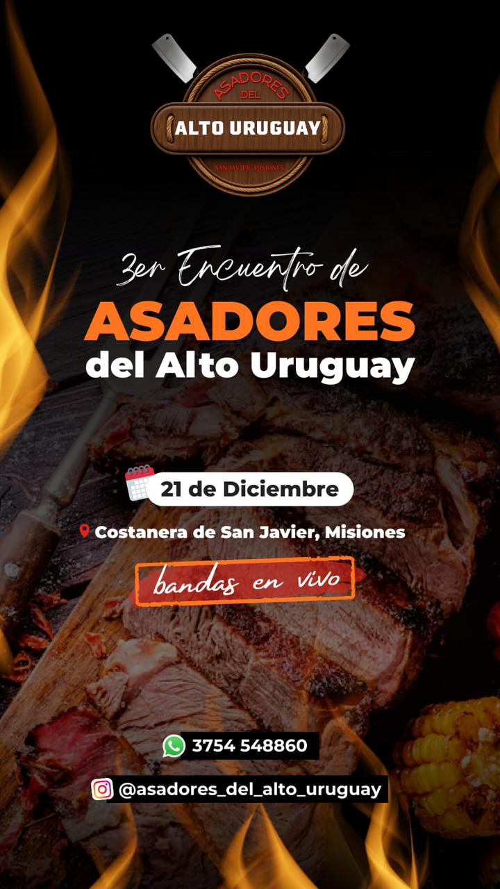 Este domingo 21, la Costanera de San Javier (sector Piedra Grande) será el escenario del 3er Encuentro de Asadores del Alto Uruguay. El evento, que abrirá sus puertas al público de 08:00 a 20:00 hs, promete una jornada cargada de folklore, chamamé y los mejores sabores de la región.