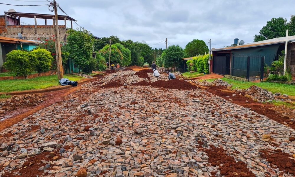 La buena política es hacer que las personas estén “cada día un poco mejor”, por lo ello a buen ritmo continúan los trabajos en el B° Virgen de Itatí de Jardín América. A pesar de la crisis nacional que redundo en una baja en la coparticipación y un aumento constante del combustible, se continúa avanzando con tareas de empedrado que mejoran la circulación y la calidad de vida de los vecinos.
