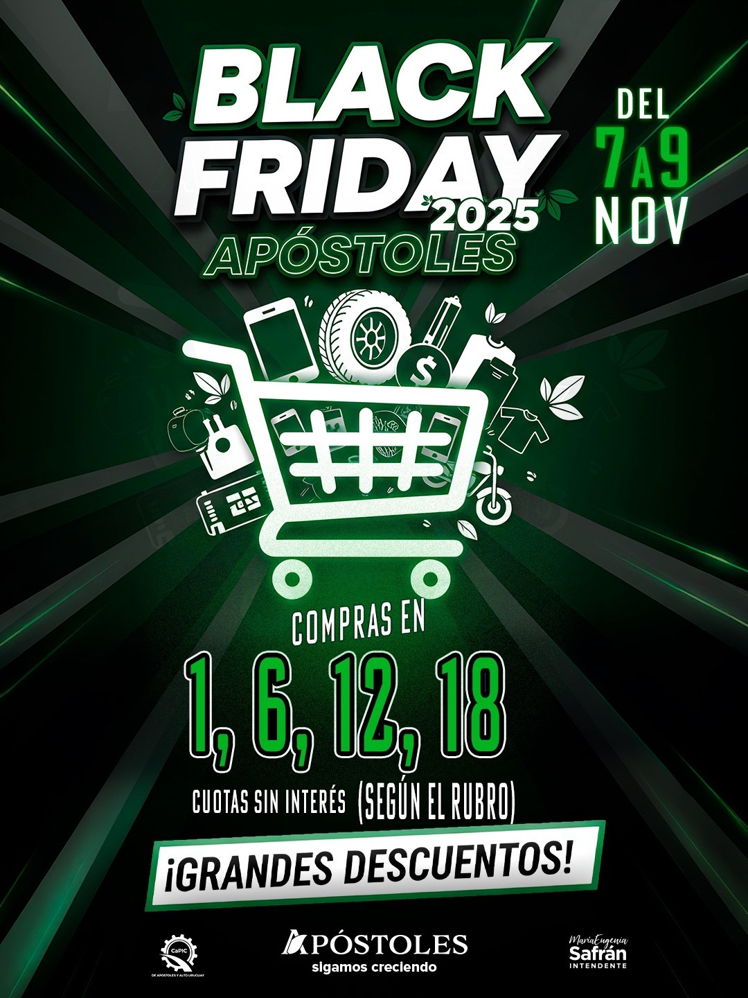 Apóstoles se prepara para vivir una nueva edición del Black Friday del 7 al 9 de noviembre, con más de 200 comercios adheridos a los programas provinciales Ahora Misiones. La iniciativa busca fortalecer el comercio local en un contexto económico desafiante, ofreciendo reintegros, descuentos y planes en cuotas.