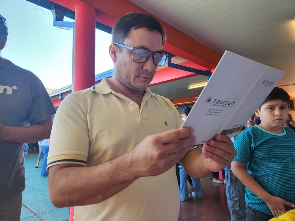 Agustín Brítez, uno de los vecinos de Jardín América que participó del operativo, contó: “Hace tiempo que necesitaba los anteojos y ahora gracias a Mirar Mejor los tengo, agradecido por esta posibilidad”.