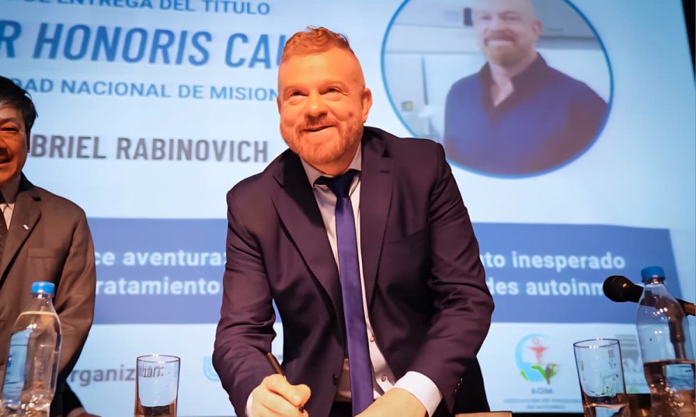 Esta semana, el investigador superior del CONICET y eminencia mundial en inmunología y oncología Gabriel Rabinovich visitó nuevamente Misiones. El Doctor en Ciencias Químicas estuvo presente en el 40° aniversario de la carrera de Farmacia de la Facultad de Ciencias Exactas, Químicas y Naturales de la Universidad Nacional de Misiones (UNaM).
