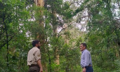 El Intendente jardinense, César Araujo y Elvio Rivas de Puerto Leoni participaron del lanzamiento de los paseos en Kayaks en el Complejo Turístico Paraíso Lodge, junto al Arroyo Tabay.