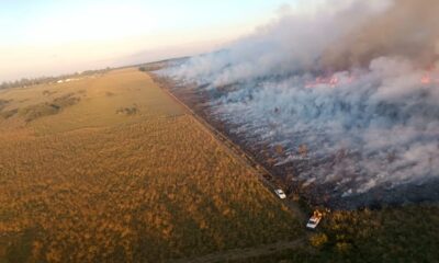Brigadistas de Ecología trabajan combatiendo un incendio de gran magnitud en la zona de Posadas