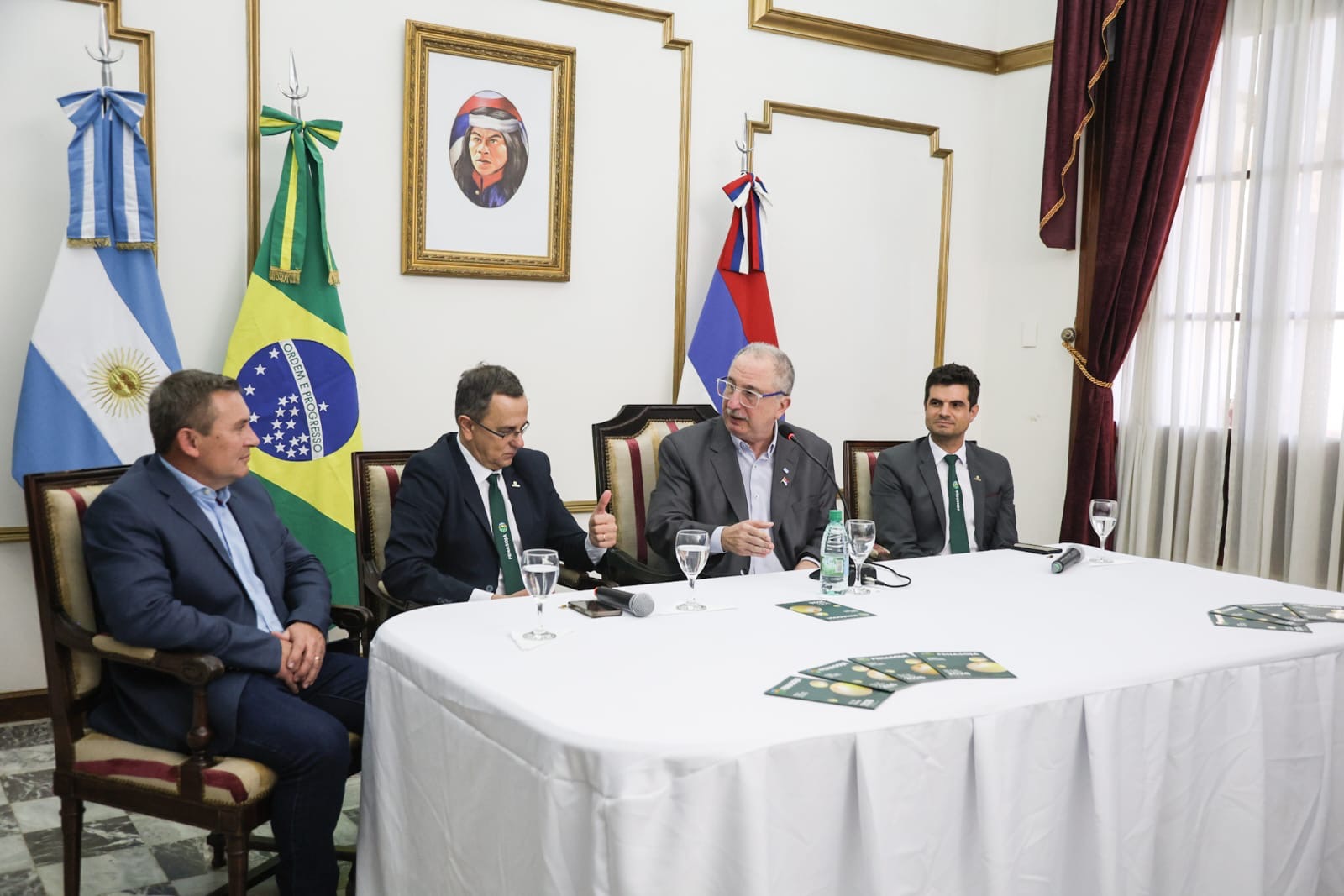 Por su parte, el prefeito municipal de Santa Rosa, Anderson Mantei, destacó el vínculo entre ambas regiones y el trabajo conjunto en temas estratégicos. “Con el gobernador Passalacqua ya hemos estado juntos tantas veces y creo que estas relaciones entre Rio Grande do Sul y la provincia de Misiones son altamente positivas para nuestros pueblos”. También remarcó que “estamos muy contentos de ser recibidos aquí en Argentina, con una relación de amistad y comunión de esfuerzos para avanzar en más horarios de balsa, el inicio del puente entre Alba Posse y Porto Mauá y la utilización del puerto de Posadas para nuestras mercancías”.