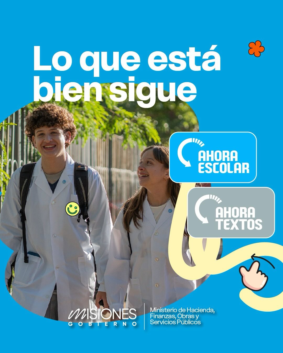 El Gobierno de Misiones confirmó la vigencia de los programas Ahora Escolar y Ahora Textos, a partir del 19 de febrero para el regreso a las aulas. La iniciativa ofrece cuotas sin interés y reintegros para la compra de indumentaria, calzado y textos escolares.
