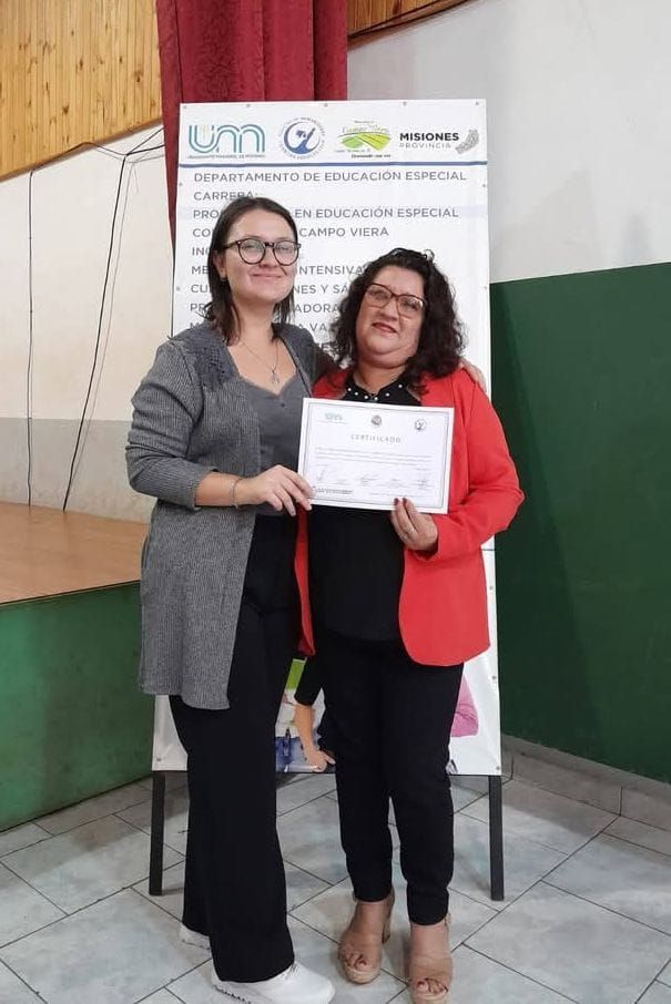 Actualmente continúa formándose y realizando la Diplomatura en Atención, Educación e Intervención Temprana del Desarrollo Infantil, en modalidad híbrida también en la Universidad Nacional de Misiones. “Recibirme fue una meta muy importante en mi vida. Me siento muy agradecida y también con mucha responsabilidad. Tengo muchas ganas de seguir formándome y aportar desde mi lugar a la educación y a la inclusión”, expresó con entusiasmo.