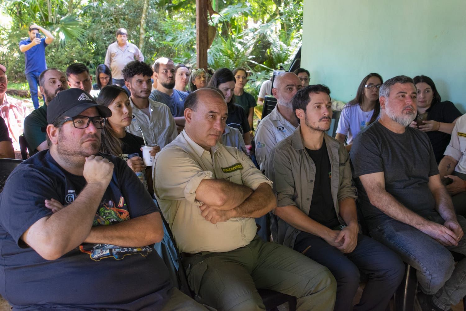 De la convocatoria participaron el ministro de Ecología y Recursos Naturales Renovables de Misiones, Arq. Martín Recamán; el intendente local, Miguel Dos Santos; el ministro de Deportes, Aldo Steinhorst; el subsecretario de Ordenamiento Territorial, Lucas Russo; el subsecretario de Ecología, Facundo Ringa; la subsecretaria de Ecoturismo y Promoción de Actividades Económicas Ambientales Sustentables del Ministerio de Turismo, Lic. Liza Rocío Carlzon; la subsecretaria de Parques Turísticos y Temáticos del Ministerio de Turismo, Vanina Vera; Fabio Malosh, director de Áreas Naturales Protegidas. Además estuvieron presentes representantes del Instituto Misionero de Biodiversidad (IMiBio), la Fundación Vida Silvestre Argentina, Aves Argentinas,el Centro de Rescate, Rehabilitación y Recría de Fauna Silvestre Güirá Oga, gestionado por la Fundación de Historia Natural Félix de Azara, el Proyecto Zorro Pitoco y el Proyecto Mono Carayá.