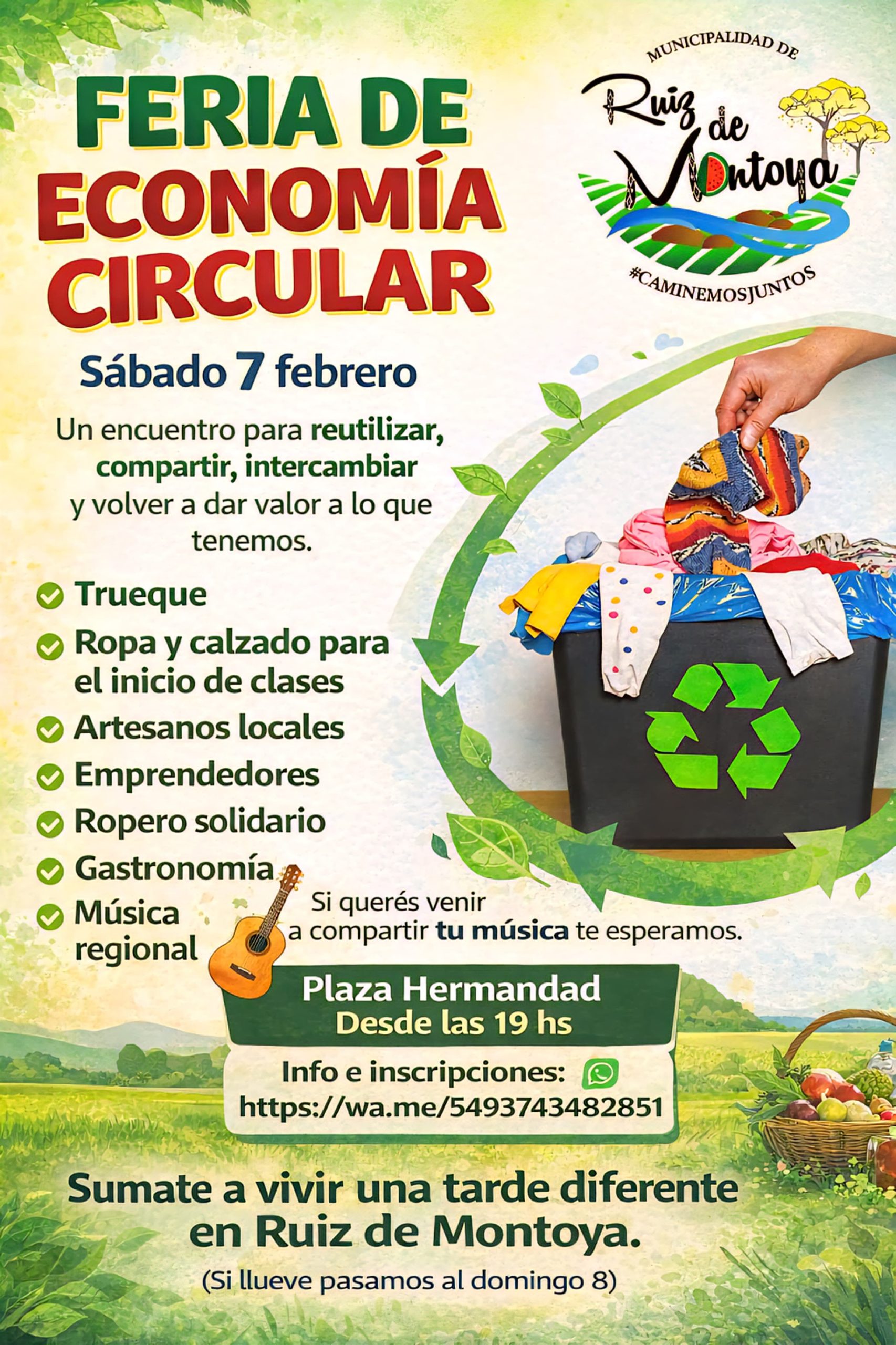 La primera feria del año la economía circular se llevará a cabo en la tradicional plaza «De la Hermandad», desde las 19:00hs. Todos están invitados a participar del encuentro para reutilizar compartir intercambiar y volver a dar valor a lo que tenemos y ya no usamos.