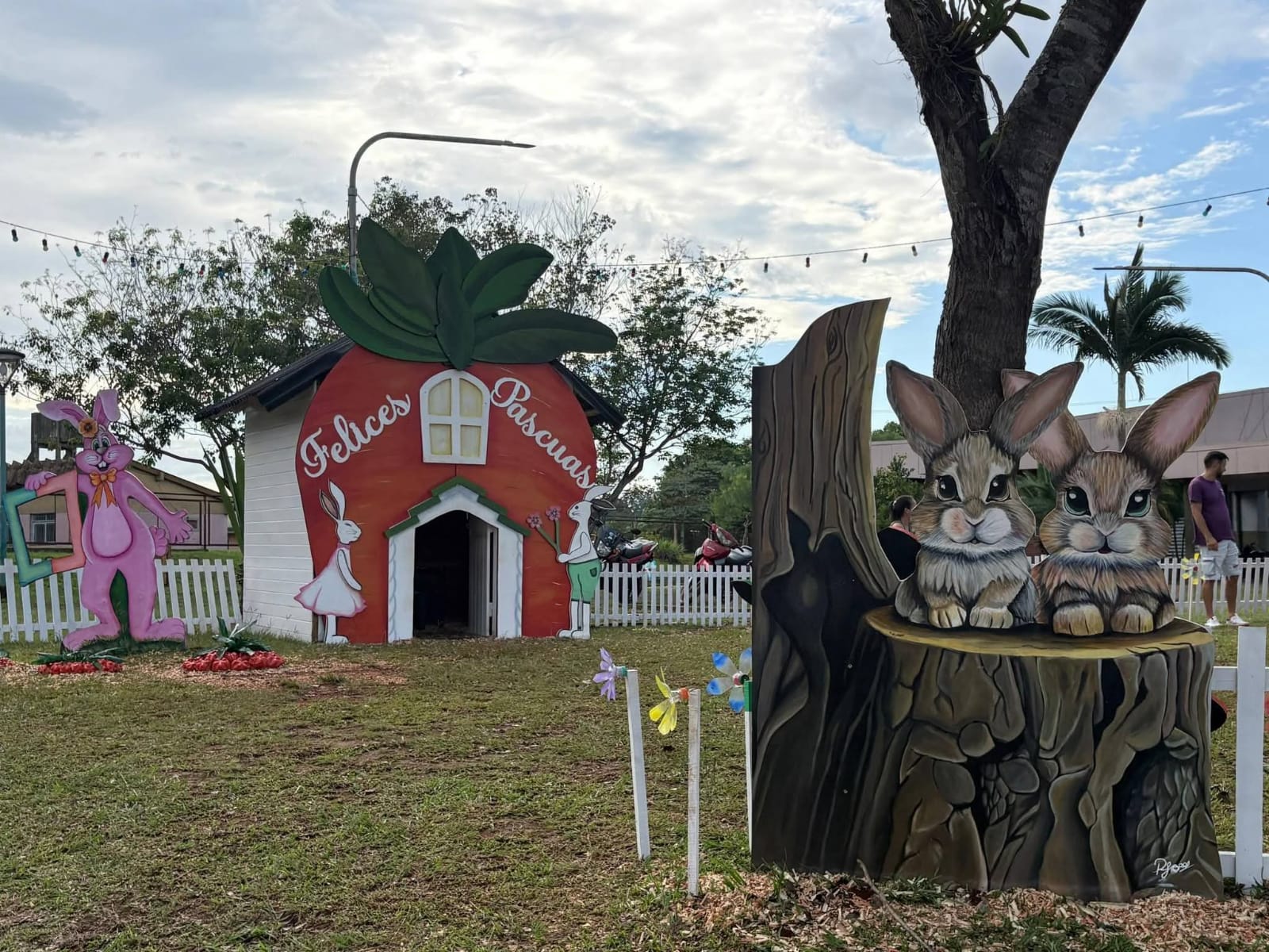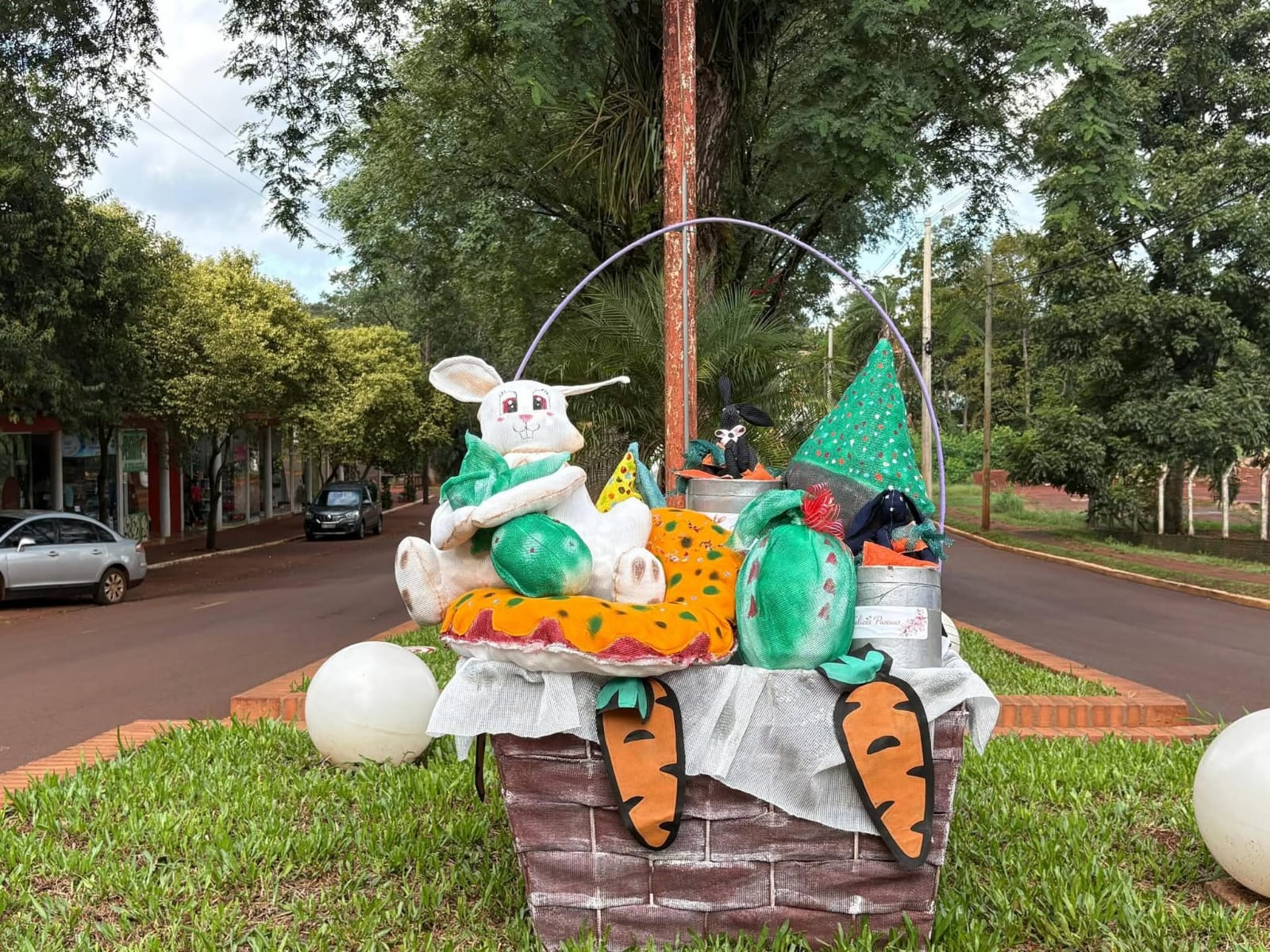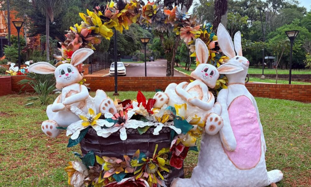 Desde el área de Ornamentación y Diseño de la Municipalidad se trabaja en la puesta en valor de distintos espacios públicos, con intervenciones decorativas en puntos estratégicos de la ciudad. Entre los elementos instalados se destacan conejos, canastos, flores y estructuras temáticas como pequeños trenes.