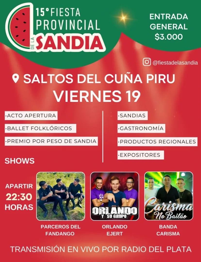 La 15° Fiesta Provincial de la Sandía espera con shows, feriantes, artesanos, productores y el mejor ambiente para cerrar el año como se merece.