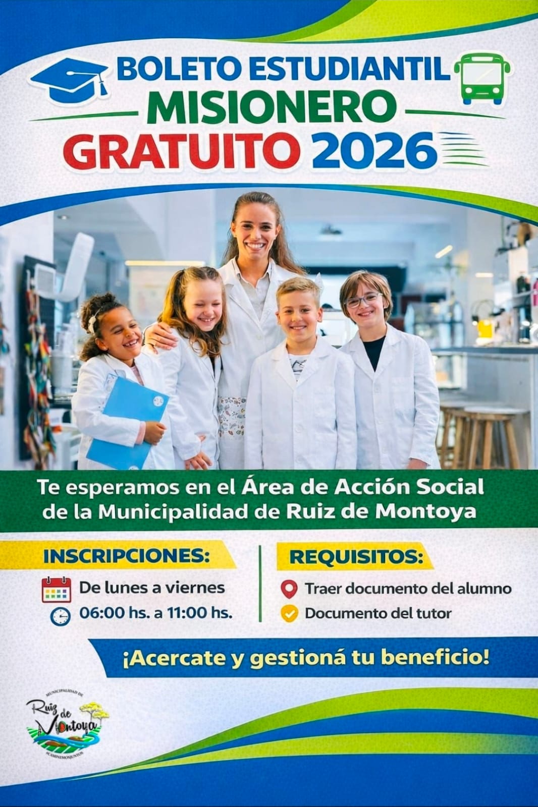 A través del área de acción social, del municipio que gestiona Víctor Vogel, comunican que se están realizando las inscripciones para el BEG 2026.