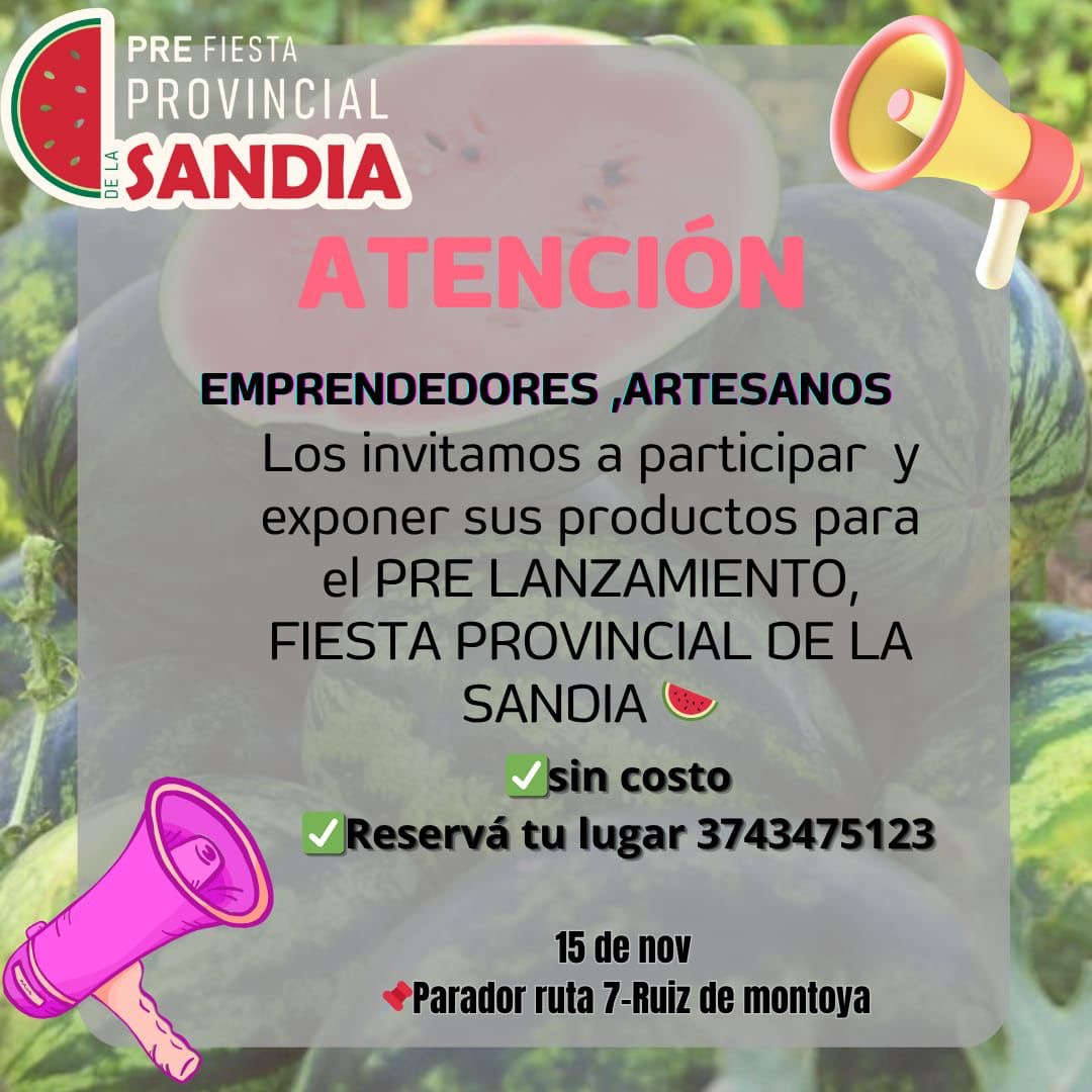 Mientras tanto es bueno ir agendando las fechas de la “Fiesta Provincial de la Sandía y la Producción ” que en esta edición 2025 será los días 19, 20 y 21 de diciembre.
