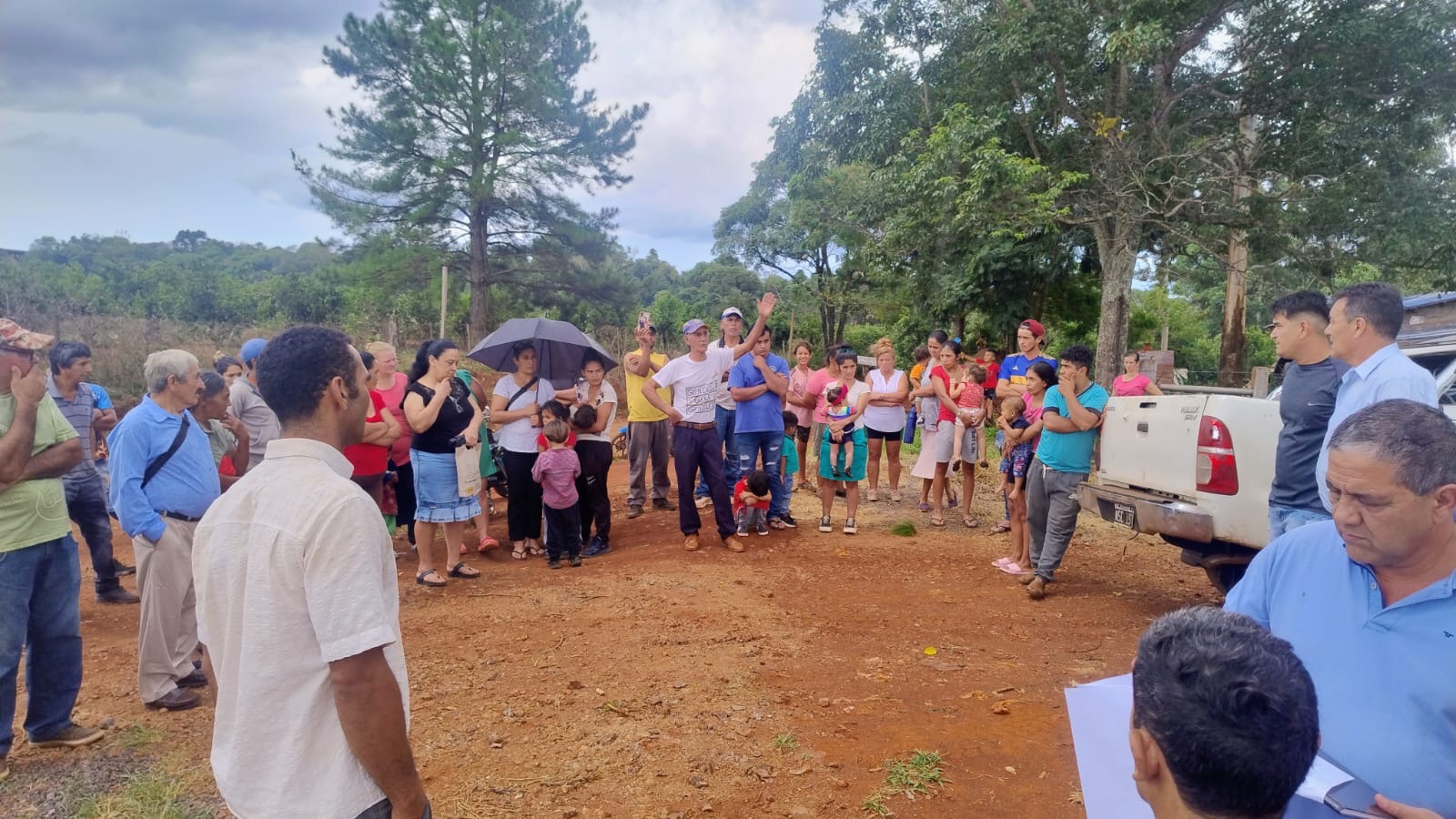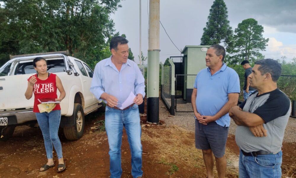 Del acto participaron el intendente Miguel Dos Santos, el jefe del Instituto Misionero de Agua y Saneamiento (IMAS) distrito San Pedro, Alejandro Pereira, el concejal Carlitos Fleitas, junto a vecinos y miembros de la comisión barrial.