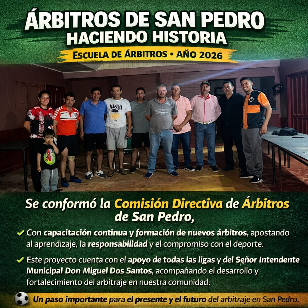La conformación de este espacio organizativo busca fortalecer el arbitraje local y garantizar un marco institucional que contribuya al crecimiento del deporte en San Pedro. Dirigentes señalaron que el objetivo es trabajar de manera coordinada para mejorar la organización de los partidos y aportar mayor transparencia y orden al fútbol de la región.