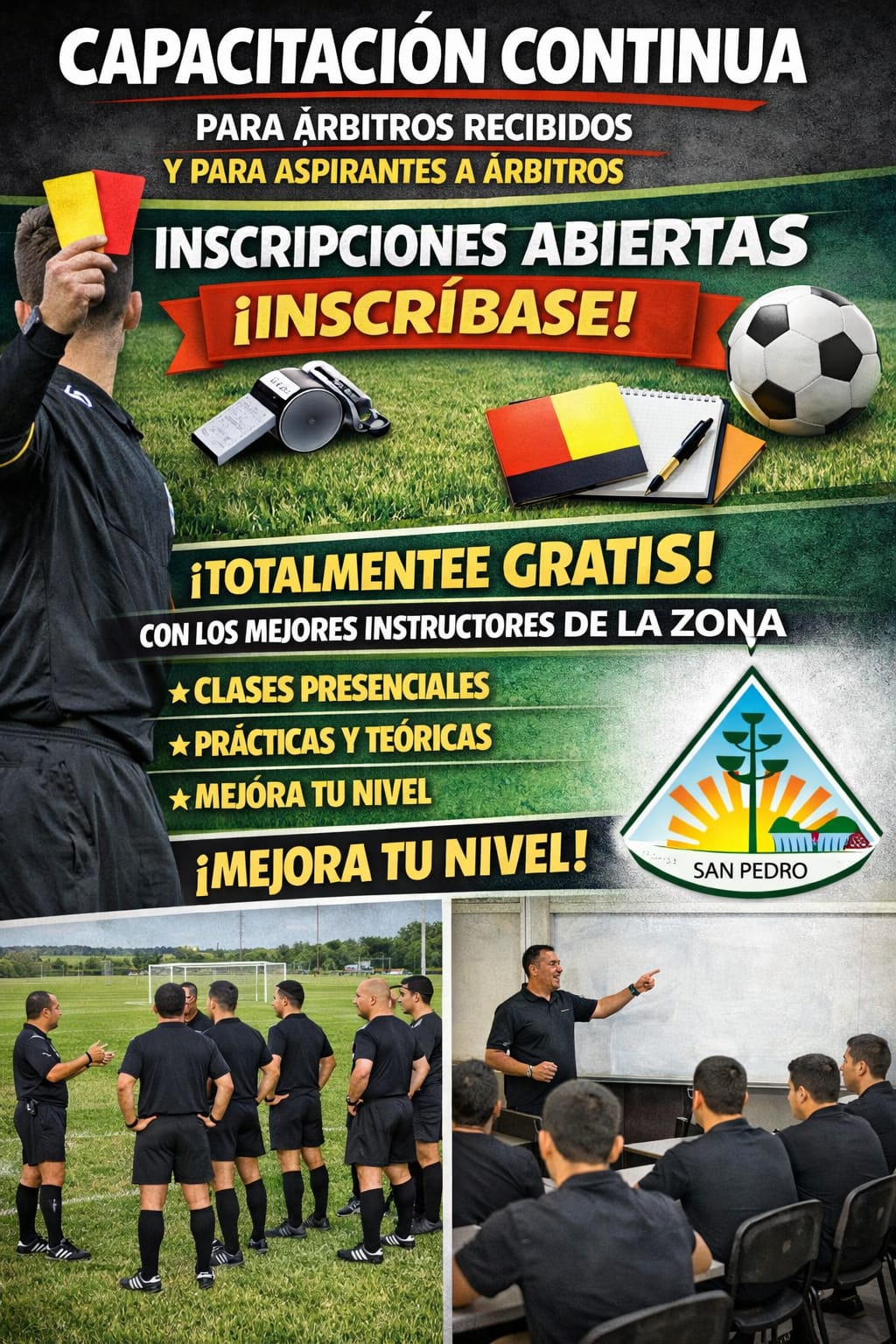 Desde este martes a las 19 horas comenzará en San Pedro un curso de formación y actualización para árbitros de fútbol, destinado tanto a quienes deseen iniciarse en la actividad como a jueces ya recibidos que busquen perfeccionarse. La propuesta se desarrollará en la cancha del barrio María Ana Mogas y es totalmente gratuita.