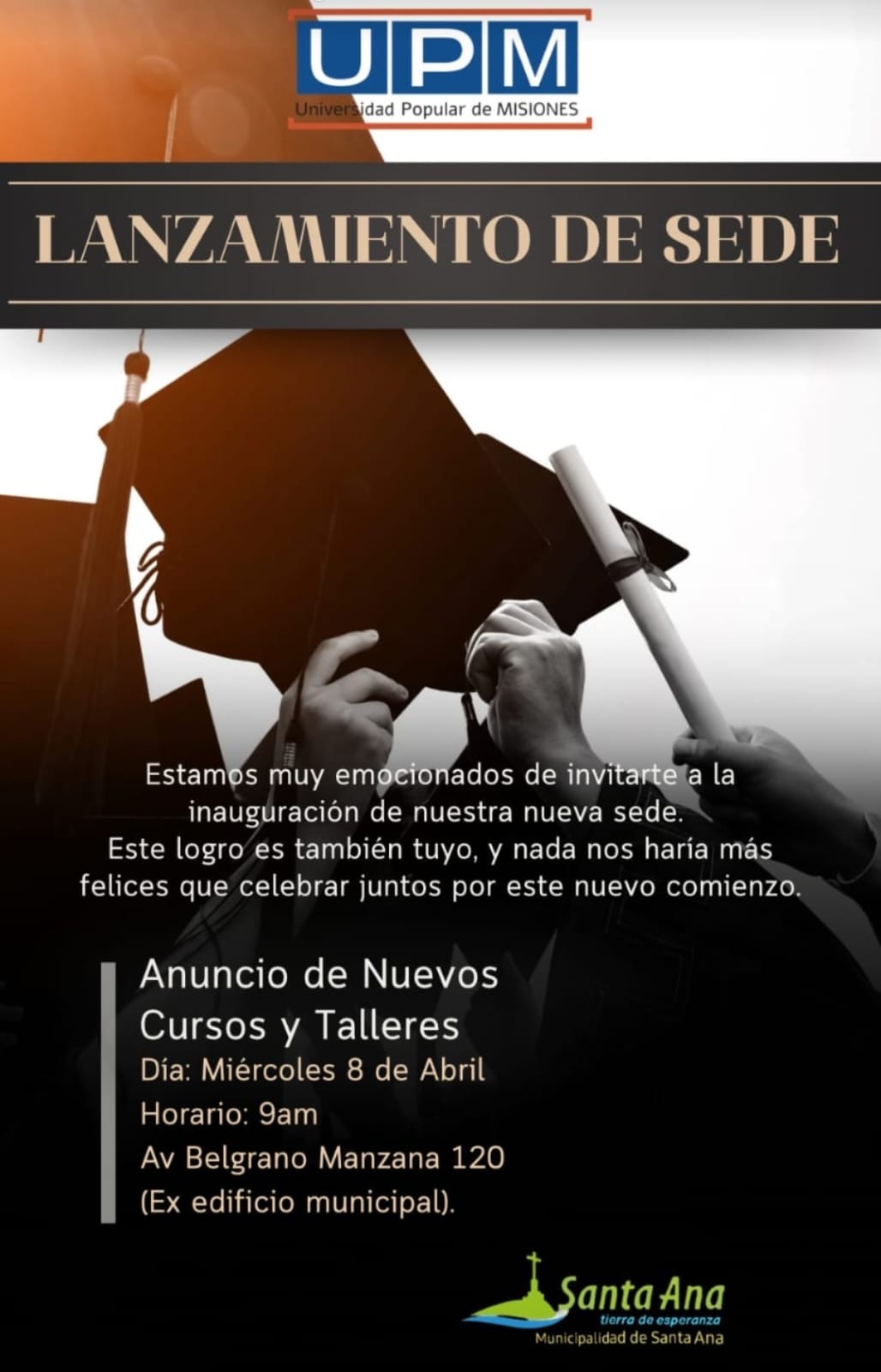 El próximo miércoles 8 de abril se llevará adelante el lanzamiento de la sede Santa Ana de la Universidad Popular de las Misiones (UPM).
