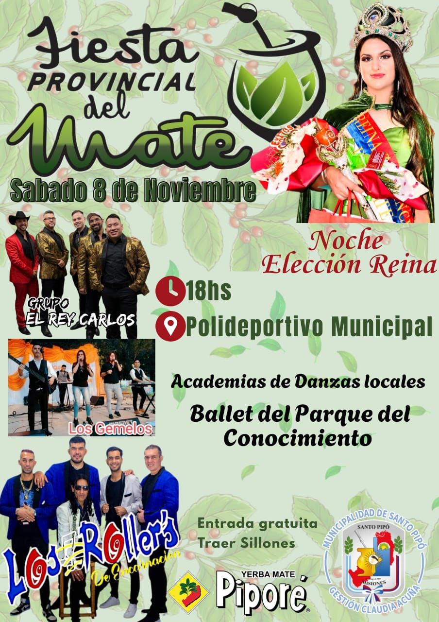 El municipio de Santo Pipó se prepara para una noche inolvidable. Este sábado 8 de noviembre, el Polideportivo Municipal será el epicentro de una de las celebraciones que celebra al producto madre de Misiones: la Fiesta Provincial del Mate, una cita que combina cultura, música y un profundo sentido de identidad con la tierra yerbatera.