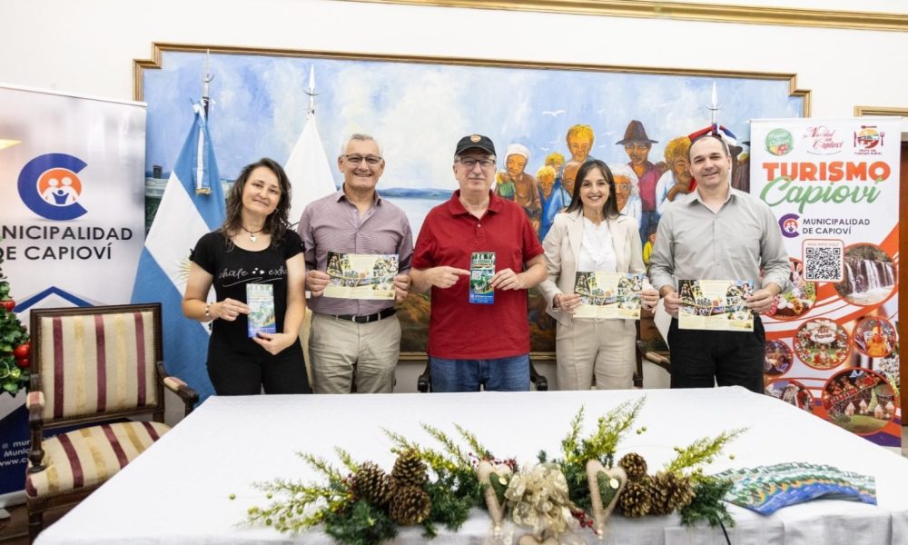 En la sala de situación de la casa de gobierno provincial y con la presencia del gobernador de Misiones, Lic. Hugo Passalacqua, del intendente de Capioví, Ramón Arrúa, el secretario de gobierno municipal Matías Häser, la directora de cultura, Carolina Ramos y la encargada del taller de decoración, Úrsula Kleiner, se presentó oficialmente Navidad en Capioví 2025.