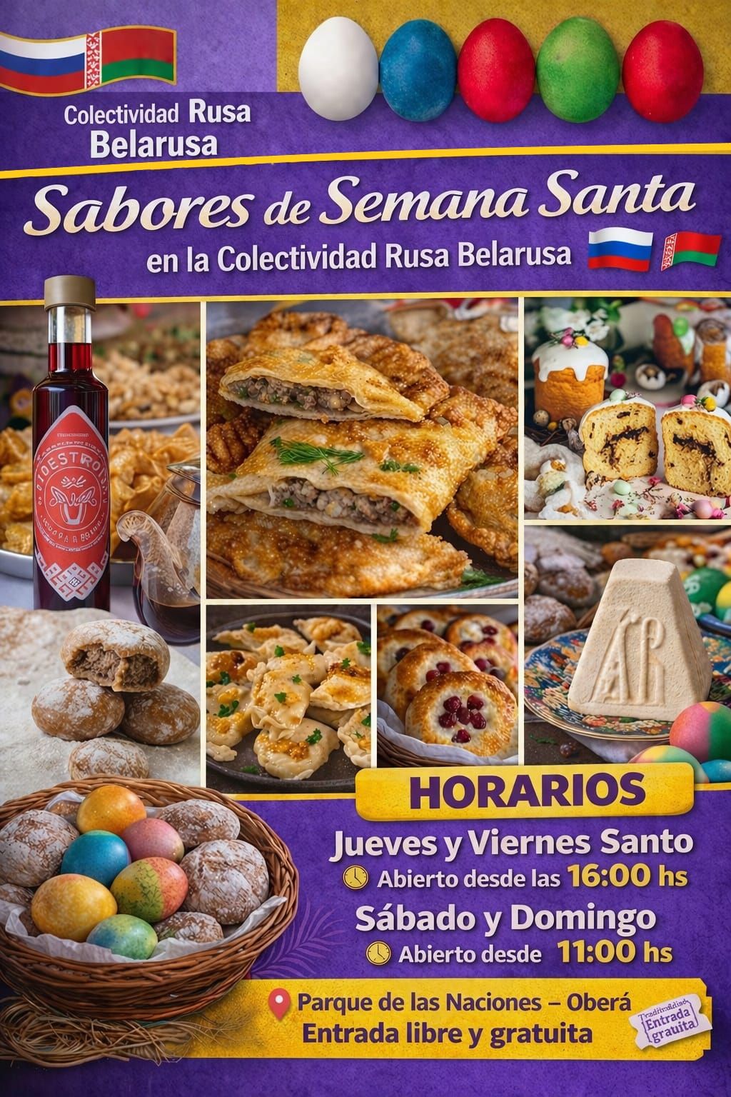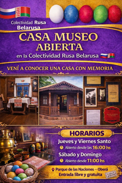 En el marco de las celebraciones de Semana Santa, la colectividad rusa belarusa de Oberá abre sus puertas con una propuesta que combina historia, cultura y gastronomía típica. Las actividades se desarrollarán en el Parque de las Naciones, con entrada libre y gratuita.