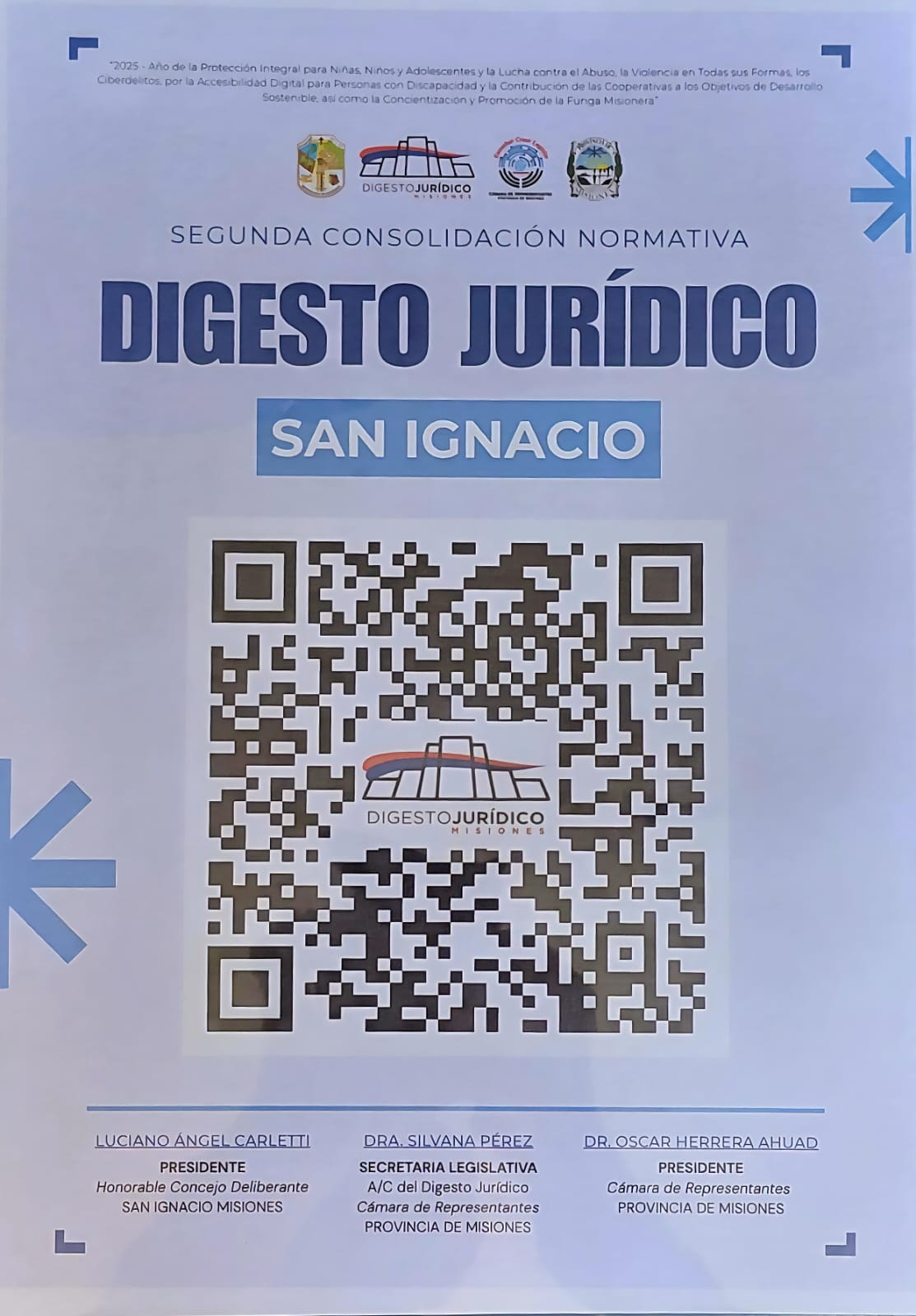 De la misma forma, la directora local de digesto jurídico de San Ignacio Dra. Jessica Analía Sánchez, dio su opinión acerca de esta importante instancia, “desde el digesto jurídico de la provincia nos trajeron un Código QR, un formato innovador de deja atrás todo el tema del gasto de papeles, pero también nosotros tenemos una plataforma que es sanignaciodigital.com.ar donde se puede ingresar y ver ya sea lo del digesto jurídico, todo lo del poder ejecutivo que va subiendo y también las cuestiones turísticas del municipio”.