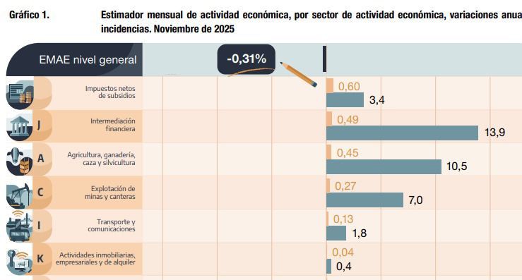 Ejemplos disímiles sobre como afrontar la situación existen en abundancia: En Chaco, el gobierno del radical Leandro Zdero eliminó el Fondo Estímulo Productivo para trabajadores del área de Producción y el gremio denunció recortes extremos en los ingresos. Varias provincias no pudieron pagar el aguinaldo, otras se endeudaron para hacerlo. En paralelo, los datos de salarios muestran tres meses seguidos de retroceso real en todo el país. Y, como si faltara una señal más, la actividad económica volvió a caer en noviembre: industria, comercio y construcción —sectores intensivos en empleo— empujan hacia abajo. El bolsillo y la economía real siguen sintiendo el ajuste. El crecimiento prometido por el presidente no llega y no muestra señales. Los únicos sectores que permiten que la caída no sea mayor son, según el INDEC, los impuestos -otra promesa incumplida de Milei-, el sistema financiero, minería y transporte -a costa de los usuarios-. Por lejos, son más los perdedores que los ganadores en el modelo pergeñado por Caputo, Sturzenegger y cía.