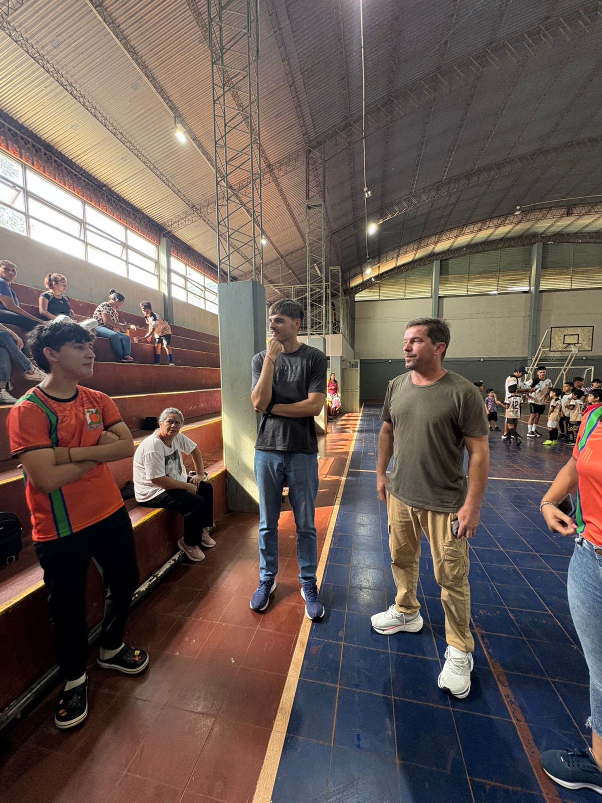 Posteriormente, se trasladaron al polideportivo municipal, donde se encontraron con jóvenes que practican diversas disciplinas como newcom, fútbol y gimnasia artística. Allí, el ministro saludó a los profesores y deportistas en un clima ameno y de entusiasmo.