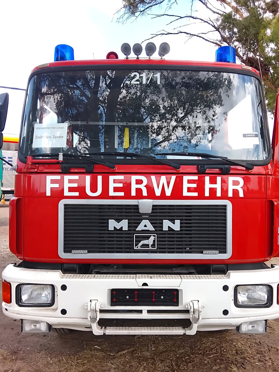 Desde el cuartel de bomberos del municipio de Pto Leoni comunican, con enorme alegría, que el camión autobomba, que fuera donado, ya fue retirado de la aduana.
