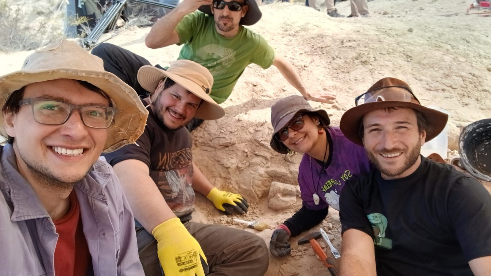 La ANG dialogó con Matías quien comentó: “Esta campaña tiene un doble propósito, se podría decir, primero el científico, con la idea de seguir con unas excavaciones que estamos realizando acá en la provincia de Río Negro, particularmente a unos 40 o 50 kilómetros al sureste de la localidad General Roca, en Río Negro, en donde venimos trabajando hace años, en una localidad que se llama Campo Arriagada, es el campo de la familia Arriagada, que amablemente nos deja pasar a su campo, y en donde estamos retirando, buscando y excavando una gran cantidad de fósiles, ya hace como unos 4 o 5 años, así que es un lugar que viene dando muchos resultados” .