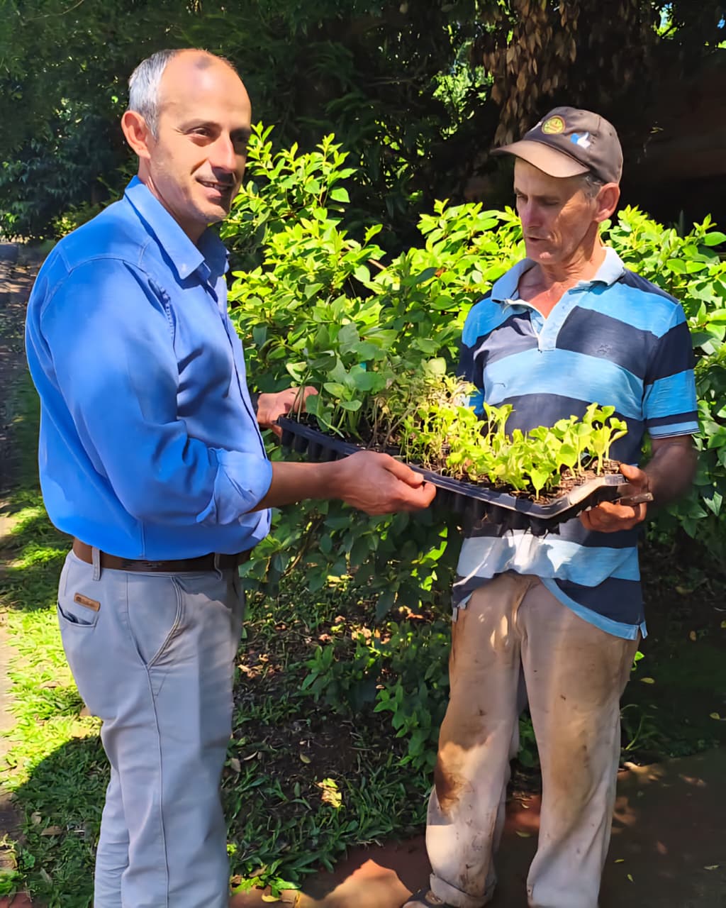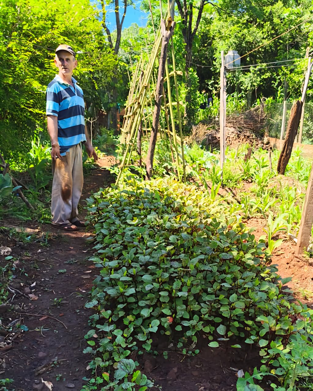 Durante la cita se hizo entrega de una bandeja mixta de plantines hortícolas, gestionada por el municipio para fortalecer la producción familiar, e incluyo, además, un recorrido por el espacio cultivado donde Don Carlos cultiva de manera diversificada hortalizas, plantas medicinales y aromáticas. El lugar cuenta también con un reservorio natural de agua, fundamental para el riego y cría de peces para autoconsumo.