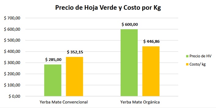 Uno de los factores determinantes es el precio de la hoja verde. El modelo orgánico alcanza valores de al menos $600/kg, más del doble del precio de referencia del sistema convencional ($285/kg). Esto permite sostener ingresos superiores aun con menores rendimientos.